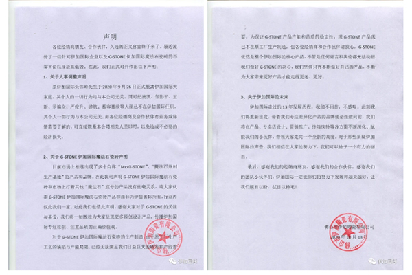 各位經銷商朋友、合作夥伴,久違的正義官宣終於來了。最近流傳了一些針對伊加國際企業以及G-STONE伊加國際魔法石瓷磚的不實言論以及故意詆毀。在此,我們正式對外作出以下聲明: